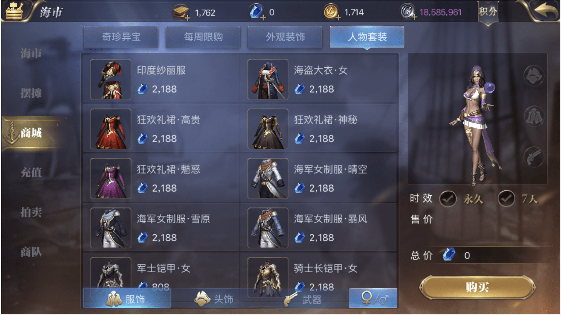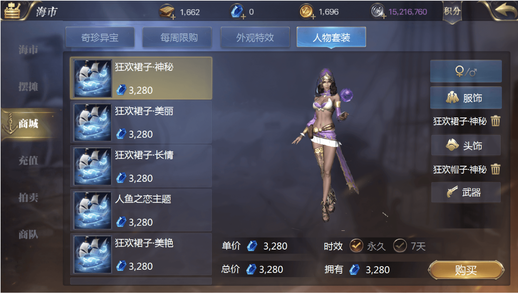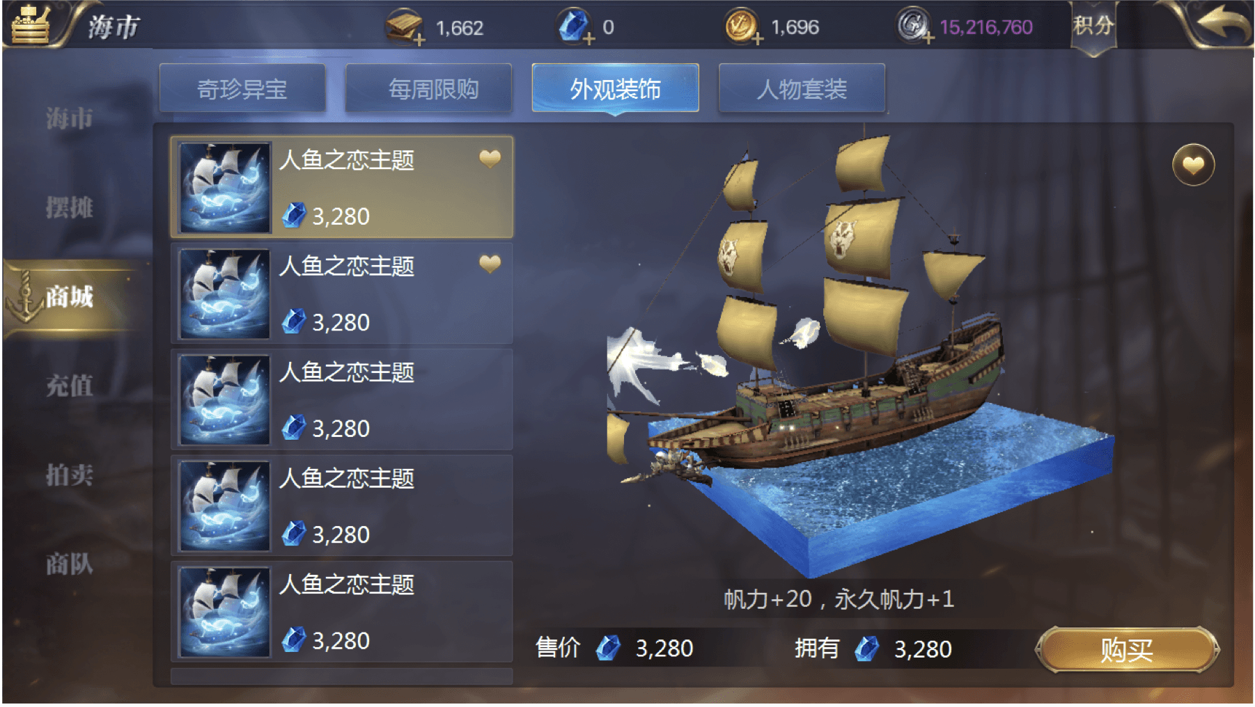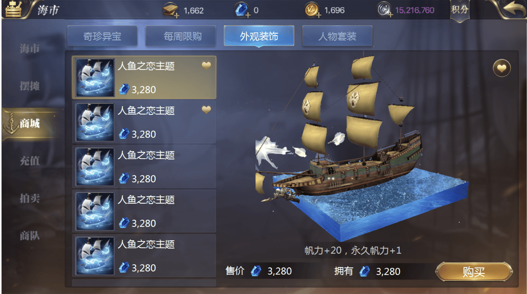 Approach 1: Add a ship model preview to the ship appearance screen, and a character model preview to the outfit screen. Clicking on any item shows the visual change in real time. To maintain interface clarity, character outfits are switched to individual-piece purchasing, and the preview area is enlarged.